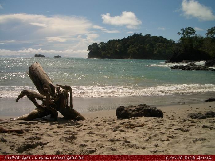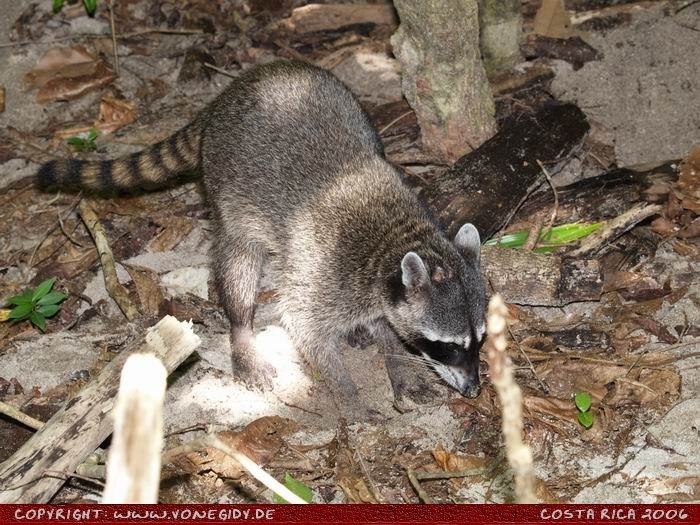 19.11. Matapalo -> Manuel Antonio NP -> Matapalo 76 km Wir wandern fast sechs Stunden durch den Nationalpark und machen damit fast alle verfügbaren Trails. Der Park ist sehr schön, wenn auch voller Besucher. Die meisten davon laufen allerdings in Badesachen und FlipFlops nur vom Eingang zu einem der wunderschönen Strände mit weissem Sand. In unseren Wanderklamotten kommen wir uns ein wenig overdressed vor. Viele Tiere sehen wir am Strand, in der Nähe der Menschen mit den gefüllten Rucksäcken. Es ist trotzdem sehr schön, da wie die Tiere auf diese Weise aus nächster Nähe zu sehen bekommen. Insgesamt – trotz der vielen Besucher – ein empfehlenswerter Park. Wir sehen sehr viele Tiere, darunter Faultiere (auch in Bewegung!), einen Waschbär, Leguane unterschiedlicher Grössen und Farben, Agoutis, Squirrel Monkeys, Brüllaffen und Kapuzineräffchen, u.v.a. Zurück in Matapalo sind wir glücklich über die Stille und Einsamkeit und waschen den Schweiß bei einem weiteren herrlichen Bad im Pazifik ab. Leider wird meine Lieblingsbadehose nachts von der Leine geklaut.