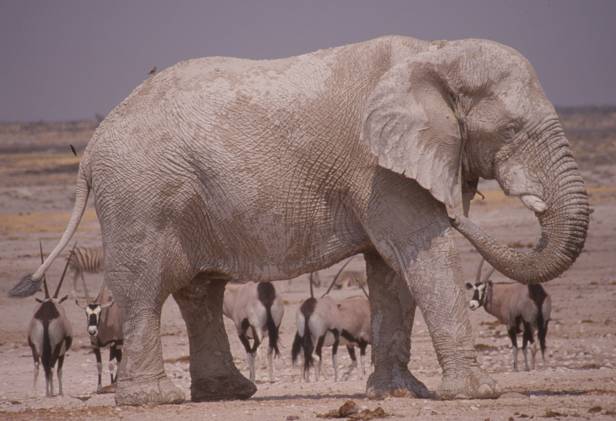 Giraffen und die Elefanten. Von letzteren treffen wir zweimal auf eine große