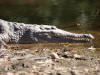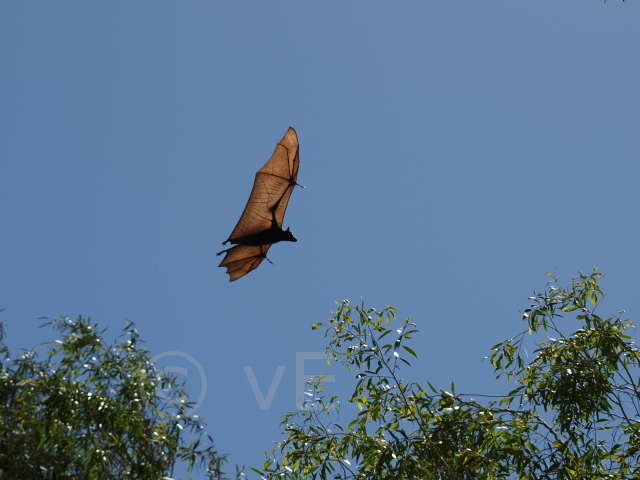 > Silent Grove 144km Der Eingang zur Windjana Gorge führt durch einen schmalen Felsspalt, danach kommt nach ein paar Metern der schönste Teil der ganzen Gorge. Felsen, Palmen, Wasser und Süßwasserkrokodiele bieten ein sehr schönes Bild. Nach etwa einem Kilometer treffen wir auf einige hundert Flying Foxes, die kreischend in den Bäumen hängen und sich gegenseitig die besten Plätze streitig machen. Von erholsamen Tagesschlaf kann da wohl kaum die Rede sein. Spannend anzusehen, und es dauert einige Zeit, bis ein paar gute Fotos der schnellen Flugkünstler im Gegenlicht gelingen. Der weitere Marsch bis zum Ende der Schlucht bietet ein paar nette Anblicke, ist aber lange nicht so schön, wie der Anfang. Nach gut viereinhalb Stunden machen wir Mittagsrast am Auto und begeben uns auf den Weg zur Lennard River Gorge [019]. Die Gibb ist weiter in gutem Zustand, ein paar unproblematische Wellblechpassagen, inzwischen geteerte Furten und Bergkämme, alles einfach und zügig zu fahren. Dir Piste zu dieser Gorge ist etwas ruppiger, die letzten, materialmordenden 1,5km sind nun gesperrt und nur zu Fuß zu bewältigen. Das ist bei der Mittagshitze und glühender Sonne ziemlich ungemütlich. Wir laufen bis zum Rand der Schlucht und drehen dann um, weil wir heute noch ein Stück weiter wollen. Ein paar, in der jetzigen Trockenzeit kleine, Flüsschen sind zu durchfahren. Spätestens hier wäre für einen PKW Schluß. Nach etwas über 20km [021] biegen wir zum Silent Grove und Bell Gorge ab, die Piste ist etwas anspruchsvoller. Da für diese Nacht kein Platz auf den einsamen Bushcamps an der Bell Gorge frei ist, quartieren wir uns auf dem sehr netten Silent Grove Campsite ein. Am Abend bekommen wir raschelnden Besuch von mehreren Bendicoats.