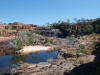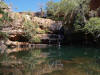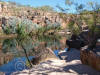 (14) 28.08. El Questro 47km Der sehr einfach (5min statt der angegebenen 30min) zu erreichende Zebedee Pool [Kreuzung 049] ist nett und voll. Er taugt nicht zur Erfrischung, da er von einer warmen Quelle gespeist wird. Offensichtlich wird er gern als "Treffpunkt im warmen Pool" genutzt. Wir hatten uns für heute eigentlich die Moonshine Gorge vorgenommen, leider ist der Track dorthin gesperrt. Wir werfen einen -wenig lohnenden- Blick auf die