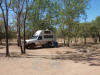 El Questro 158km Der Fluß am Camp lädt nicht wirklich zum Baden ein, aber als wir eine Weile geduldig am Ufer sitzen, kommen einige hübsche Vögel zu Besuch. Auf nun wieder guter Piste brausen wir Richtung Osten. Die breite Furt des Panticost Rivers ist flach und gut zu durchqueren. El Questro [051] ist touristisch voll erschlossen und stark besucht. Zum Glück bekommen wir noch eines der Bushcamps am Fluß und haben nun ein einsames Camp mit einigen hundert Metern zum nächsten Nachbarn [052]. Wir stehen gut beschattet allein in der Natur mit nur ein paar Metern zum Fluß, herrlich.