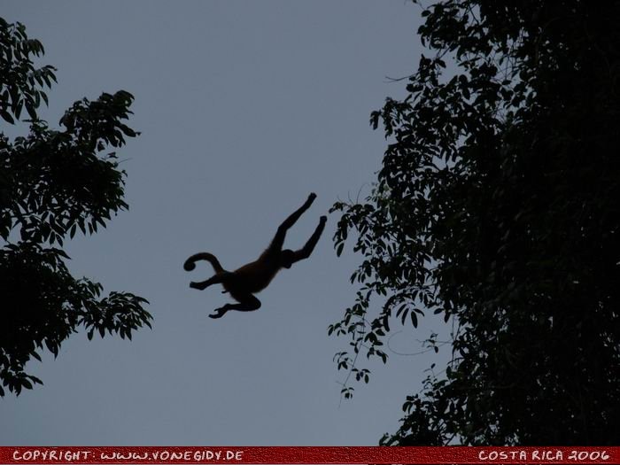 19.11. Matapalo -> Manuel Antonio NP -> Matapalo 76 km Wir wandern fast sechs Stunden durch den Nationalpark und machen damit fast alle verfügbaren Trails. Der Park ist sehr schön, wenn auch voller Besucher. Die meisten davon laufen allerdings in Badesachen und FlipFlops nur vom Eingang zu einem der wunderschönen Strände mit weissem Sand. In unseren Wanderklamotten kommen wir uns ein wenig overdressed vor. Viele Tiere sehen wir am Strand, in der Nähe der Menschen mit den gefüllten Rucksäcken. Es ist trotzdem sehr schön, da wie die Tiere auf diese Weise aus nächster Nähe zu sehen bekommen. Insgesamt – trotz der vielen Besucher – ein empfehlenswerter Park. Wir sehen sehr viele Tiere, darunter Faultiere (auch in Bewegung!), einen Waschbär, Leguane unterschiedlicher Grössen und Farben, Agoutis, Squirrel Monkeys, Brüllaffen und Kapuzineräffchen, u.v.a. Zurück in Matapalo sind wir glücklich über die Stille und Einsamkeit und waschen den Schweiß bei einem weiteren herrlichen Bad im Pazifik ab. Leider wird meine Lieblingsbadehose nachts von der Leine geklaut.