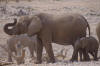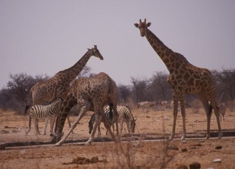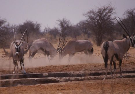 am Wasserloch vom Camp Okaukuejo spielt sich Interessantes ab. Es stehen