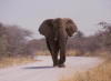 Gate läuft uns der erste Elefant über den Weg. Er bleibt am Straßenrand