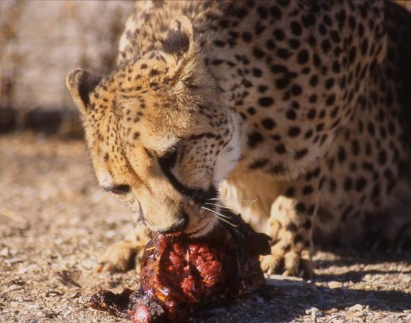 ausgewachsene Geparden auf ihr Futter. Zu unserer großen Überraschung öffnet