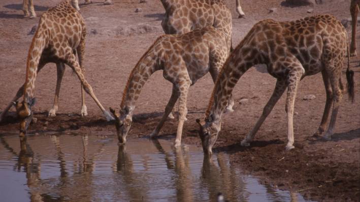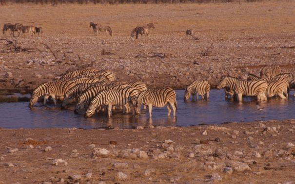 Andoni und Tsumcor Glück und sehen herdenweise Tiere beim Trinken. Am